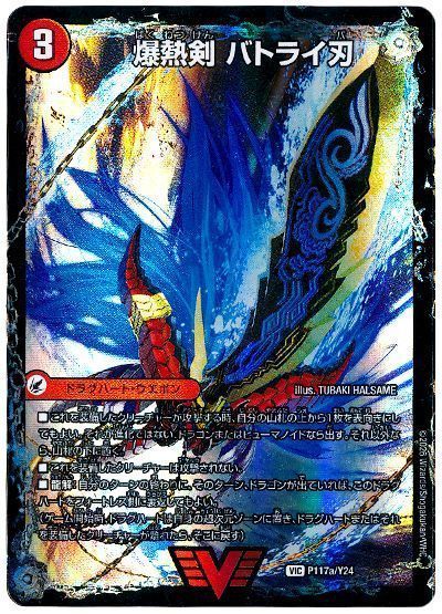 ■自分の火のドラゴンまたは火のヒューマノイドが攻撃する時、自分の山札の上から1枚目をすべてのプレイヤーに見せてもよい。それが進化ではないドラゴンまたは進化ではないヒューマノイドであれば、バトルゾーンに出す。それ以外なら、自分の山札の一番下に置く。