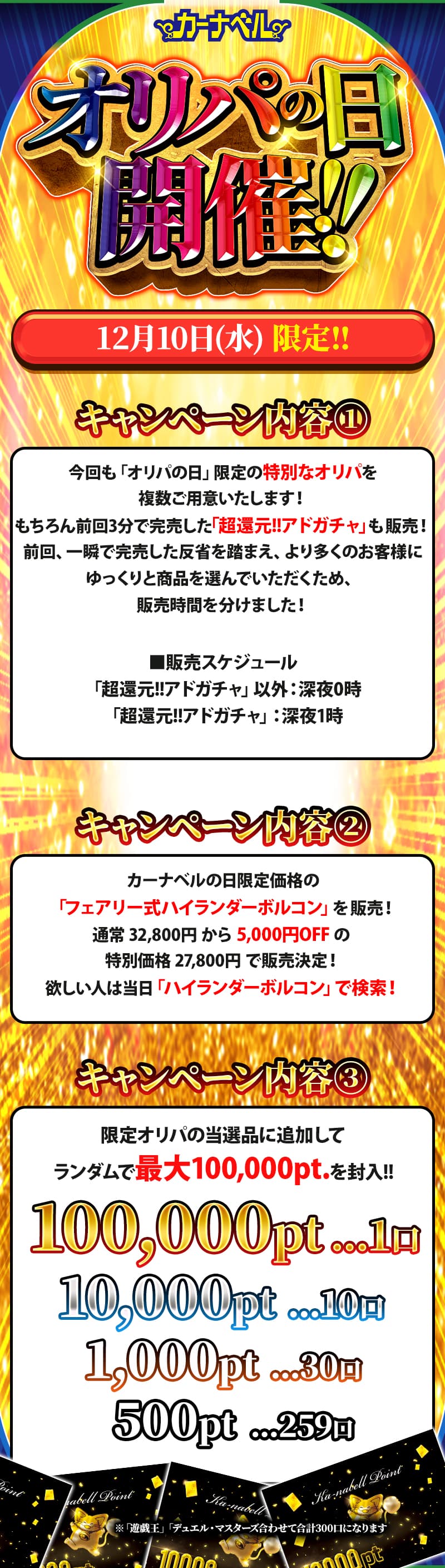 | 12月 4日 | 「超」お宝級のカード達が大集結‼『超一攫千金チャレンジ』開催‼ |