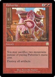 あなたは、粉みじんのマナ・コストを支払うのではなく、山(Mountain)を2つ生け贄に捧げることを選んでもよい。
