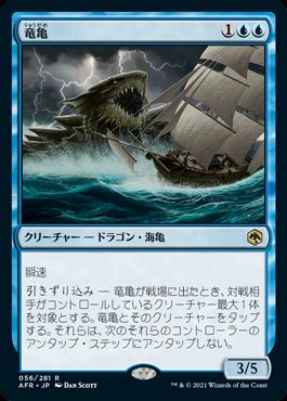 引きずり込み ― 竜亀が戦場に出たとき、対戦相手がコントロールしているクリーチャー最大1体を対象とする。竜亀とそのクリーチャーをタップする。それらは、次のそれらのコントローラーのアンタップ・ステップにアンタップしない。